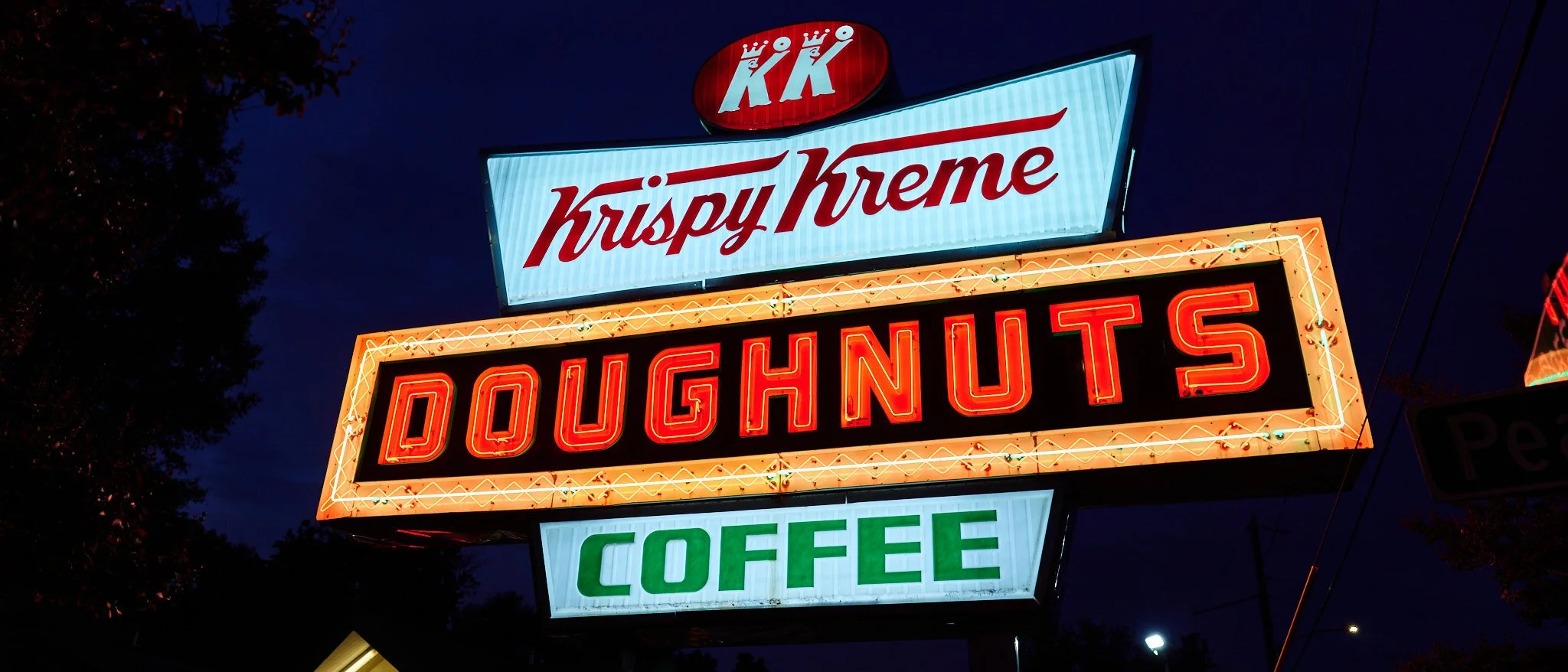 We had the opportunity to work with McCorkle Signs on their restoration of the Krispy Kreme monument sign at the corner of Peace and Person streets in Raleigh, NC. This incredible, double sided sign features backlit logos (converted from fluorescent to LED backlighting) along with some truly spectacular neon lettering and border elements.