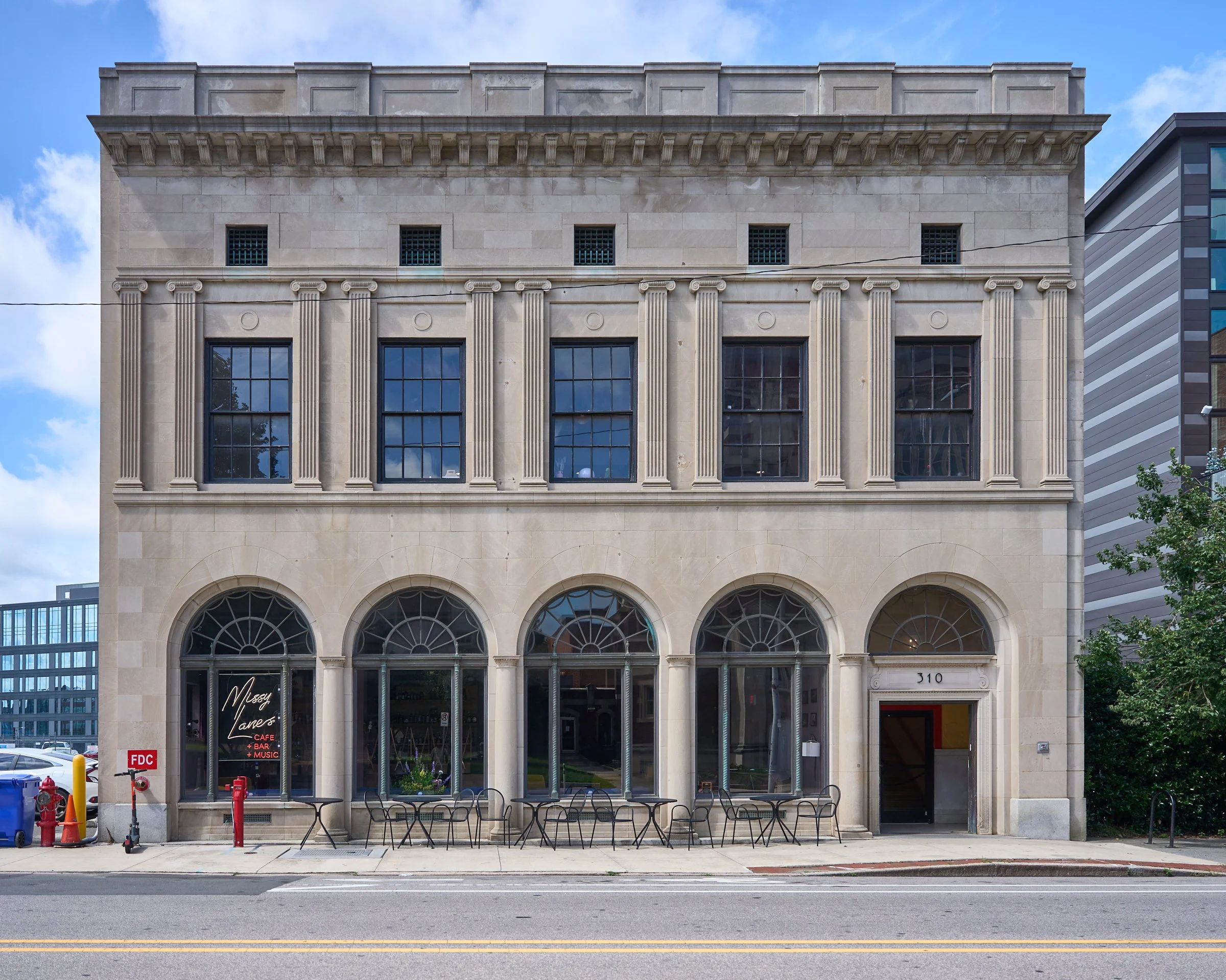 A view of the Missy Lane's facade with the new sign in the left-most window.